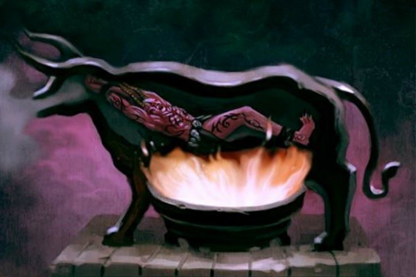 A bronz bikát az ókor egyik legkegyetlenebb találmányának tartották. Az elítéltet egy üreges bronzbika közepébe zárták, tüzet gyújtottak alatta és lényegében élve megsütötték. A bikába egy olyan kürtöt építettek, amely úgy továbbította az áldozat haláltusájának hangjait, mintha tényleg egy bika üvöltene. A bronz bika nemcsak a teljes tehetetlenség és a borzasztó kínok miatt volt elképesztően kegyetlen, de annak “szórakoztató funkciója” miatt is. Tudniillik a kivégzéseket gyakran forgalmasabb tereken, a nép előtt hajtották végre, hogy mindenki jól szórakozhasson a bronzból készült állat bőgésén.