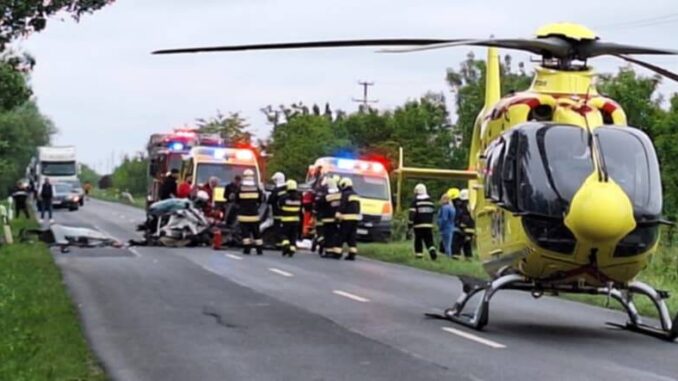 A balesethez az egységek és a társhatóságok járművei mellett mentőhelikopter is érkezett, a munkálatok idejére lezárták az érintett útszakaszt.