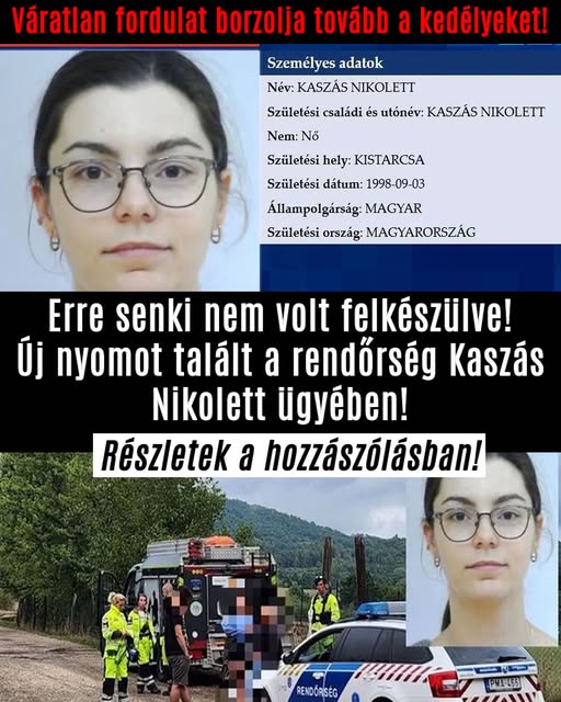 Lassan két hete nincs hír a 27 éves Kaszás Nikolettől, aki szeptember 7-én indult el egyedül túrázni. A család és a barátja másnap szembesült azzal, hogy a fiatal nő nem tért haza egyik megszokott helyére sem. A rendőrség azóta is nagy erőkkel kutat, és most egy váratlan fordulat borzolja tovább a kedélyeket.