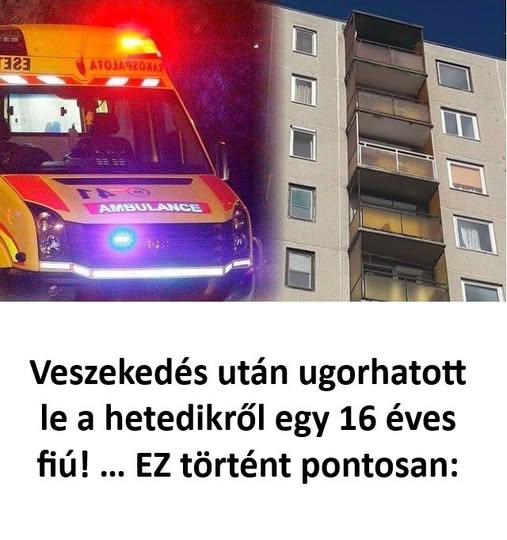 Szörnyű látvány fogadta az egyik IV. kerületi lakótelepen élőket vasárnap kora délután: meghalt egy 16 éves fiú, aki kizuhant a társasház hetedik emeleti erkélyéről a budapesti Megyeri úton,írja a blikk.hu. A Budapesti Rendőr-főkapitányság sajtóügyeletének tájékoztatása szerint a fiú eddig tisztázatlan körülmények között zuhant le az erkélyről, a rendőrség azonban az idegenkezűséget kizárta.